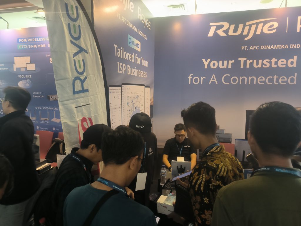 Dalam acara ini, terdapat banyak booth dari merek ternama seperti Mikrotik, Unifi, Ruijie, dan Tarmox.