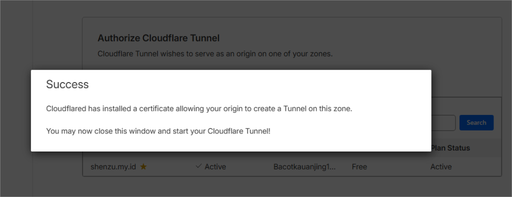 Cloudflared perlu izin untuk mengelola domain Anda.