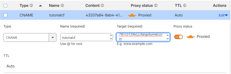 Cloudflared dapat membuatkan DNS record tunnel secara otomatis.